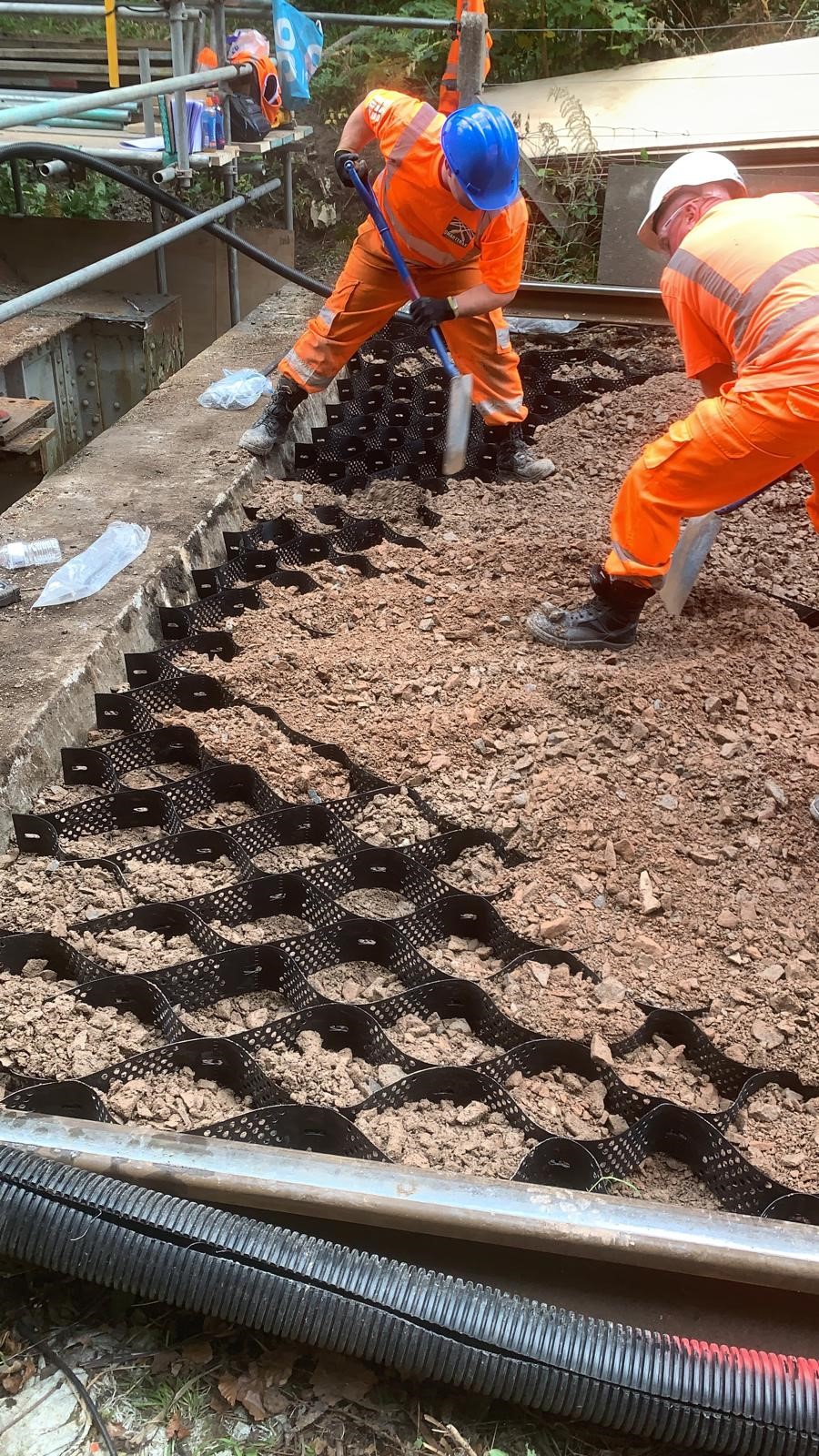 At either end of the bridge a 30m excavation was completed and a transition slab of geo-cell and type 1 installed along with new bottom ballast. New gathering arrangements were built to replace the existing dilapidated ones.