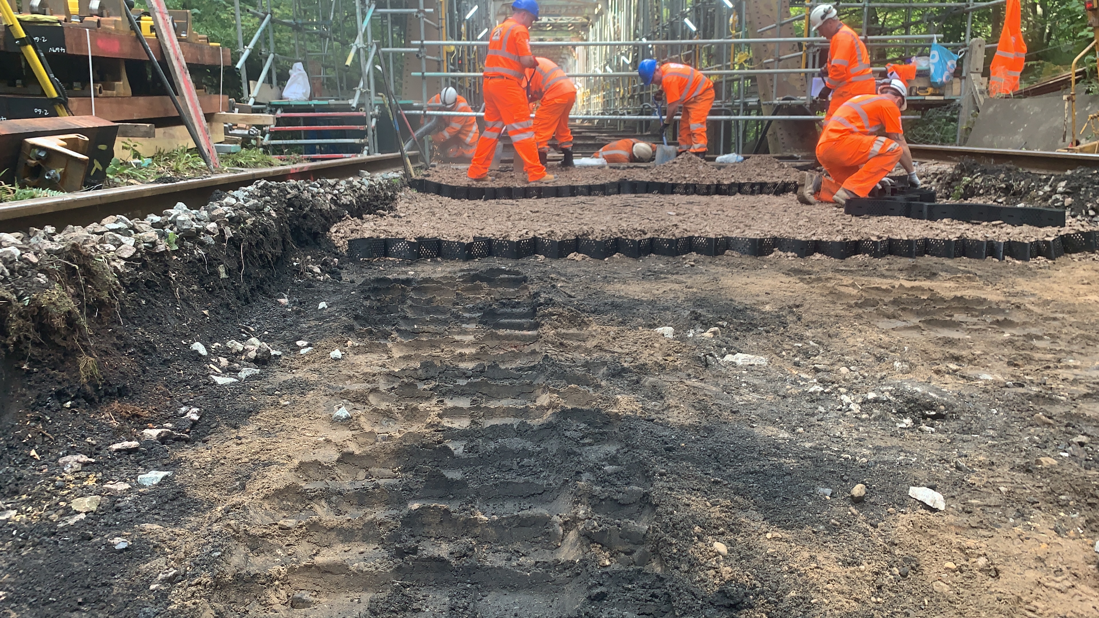 When all the beams were installed the site was re-railed with new 18.288m CEN56 rails and UIC 33 guard rails were fitted.